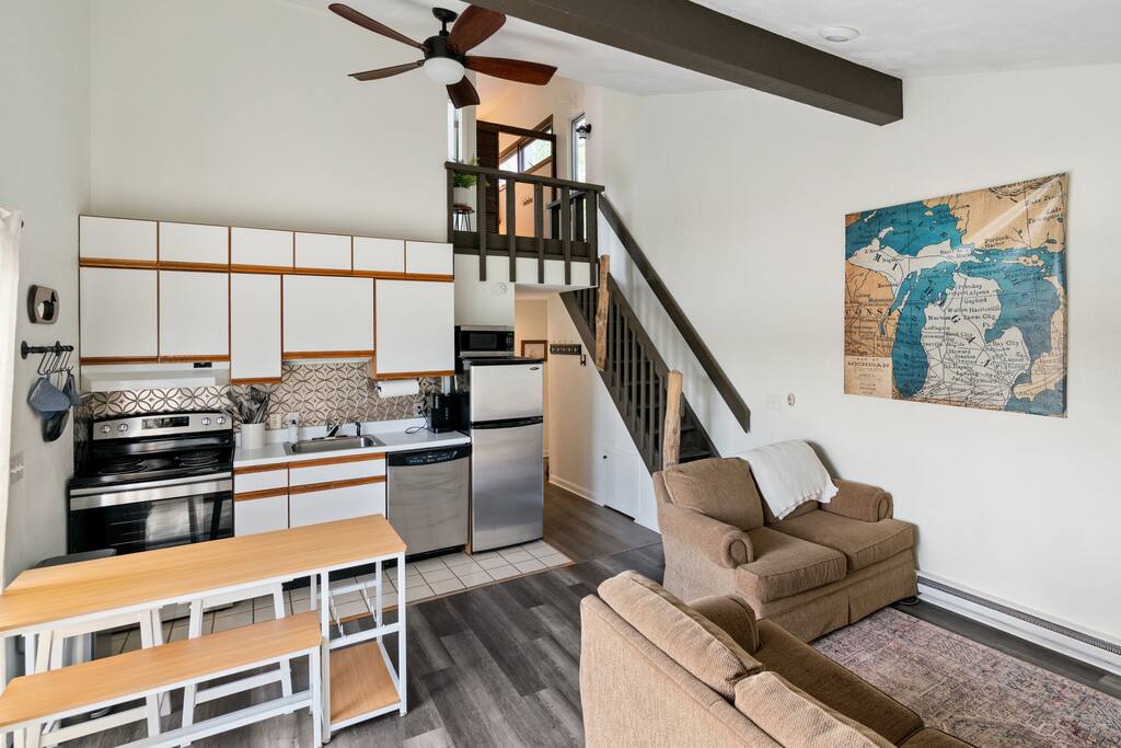 <br>🔐 The main guest must be 21+ to book. 👥 The property is one of three units in a building, and shares a wall with one of the units. There are two other buildings in the community, which include other rental units. The beach area, dock, and fire pits are shared amongst the community and other rental guests. ❄️ Like many homes in the region, our home does not have full coverage for A/C. There is only a portable A/C unit in the living room. Summers in Northern Michigan are typically mild, but we provide portable fans for your comfort. We also encourage guests to open the windows to enjoy the fresh air and enhance circulation as needed. 🚰 The property uses well water. Depending on the season – particularly when hot – the water may have a sulfur smell. This is common in the area, and it is perfectly safe to use and drink the water. We provide a Brita water pitcher for your convenience as well. 🧦 Due to septic tank limitations, there is no in-unit washer and dryer. If needed, there is a laundromat about 10 minutes away. 🔥 The living room fireplace is inoperable and cannot be used. 🕙 The property is located in a quiet, secluded community. We kindly ask that there are no parties, events, or loud noises. Quiet hours are observed from 10:00pm to 8:00am. 🌳 The property is located in a wooded area, so you may encounter bugs, reptiles, and furry critters of all sizes (including but not limited to rodents, squirrels, and deer). While we have regularly scheduled pest control, we cannot guarantee that these critters won’t be visible in and around the property. Please keep doors closed and avoid leaving food outside to prevent unwanted critters. Additionally, please refrain from feeding any wildlife. Refunds will not be provided if a local critter visits the property. 🚫 Refunds will not be provided for power outages, weather, natural disasters, or other events beyond our control.